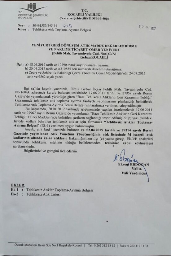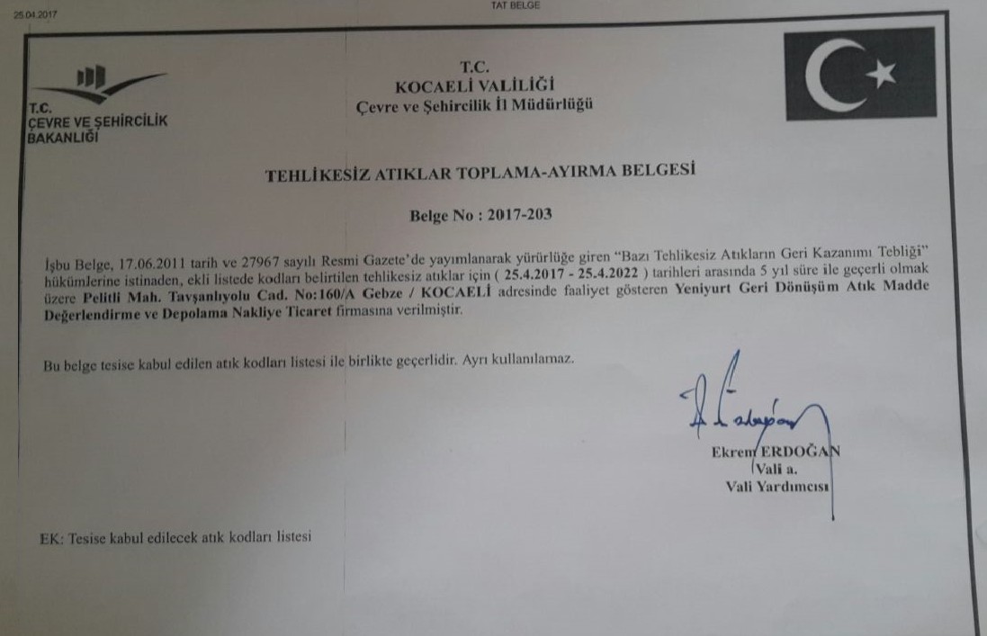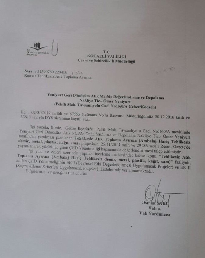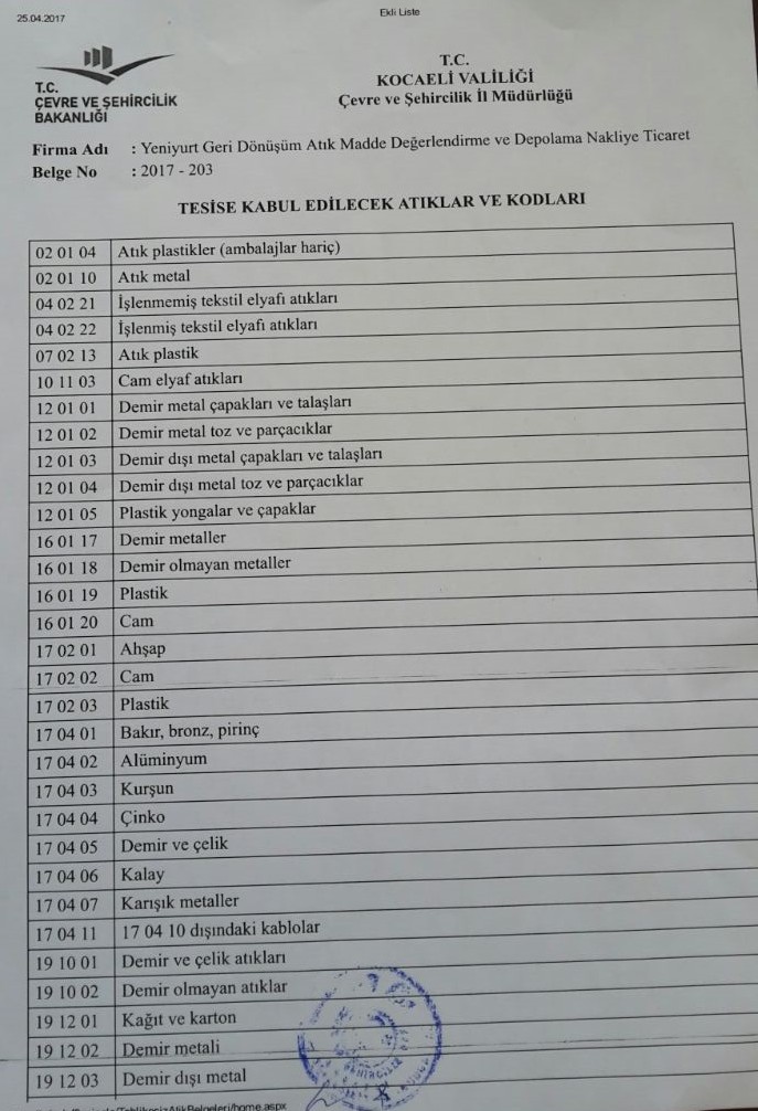 YENİYURT GERİDÖNÜŞÜM ATIK MADDE DEĞERLENDİRME VE DEPOLAMA GEBZE